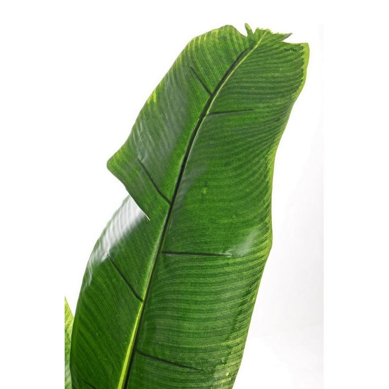 Pianta Banano con vaso, realizzata con foglie in PP, vaso in plastica e contenuto in cemento per la stabilità.
