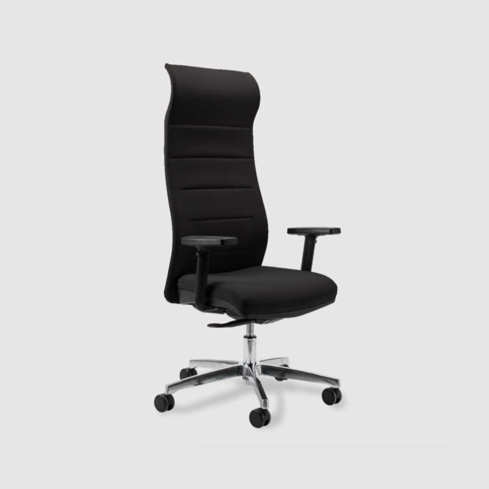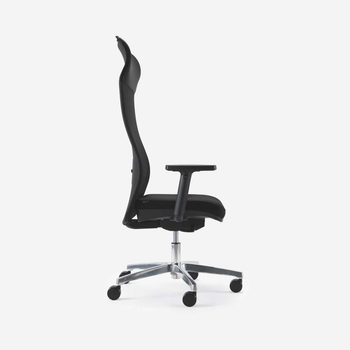 La poltrona direzionale grid48_t ha uno schienale alto in resina espansa indeformabile, il sedile imbottito in resina espansa indeformabile, braccioli regolabili in altezza.