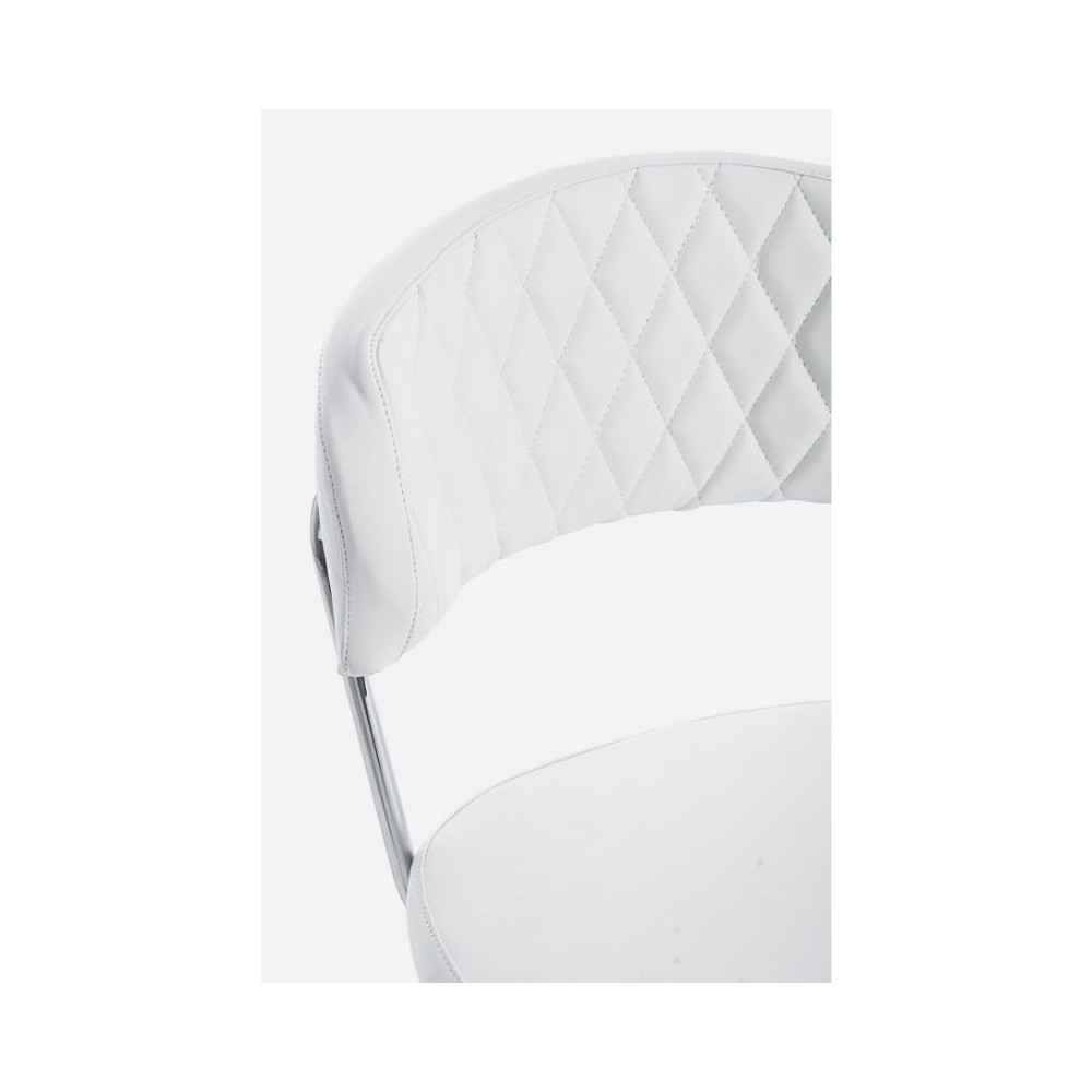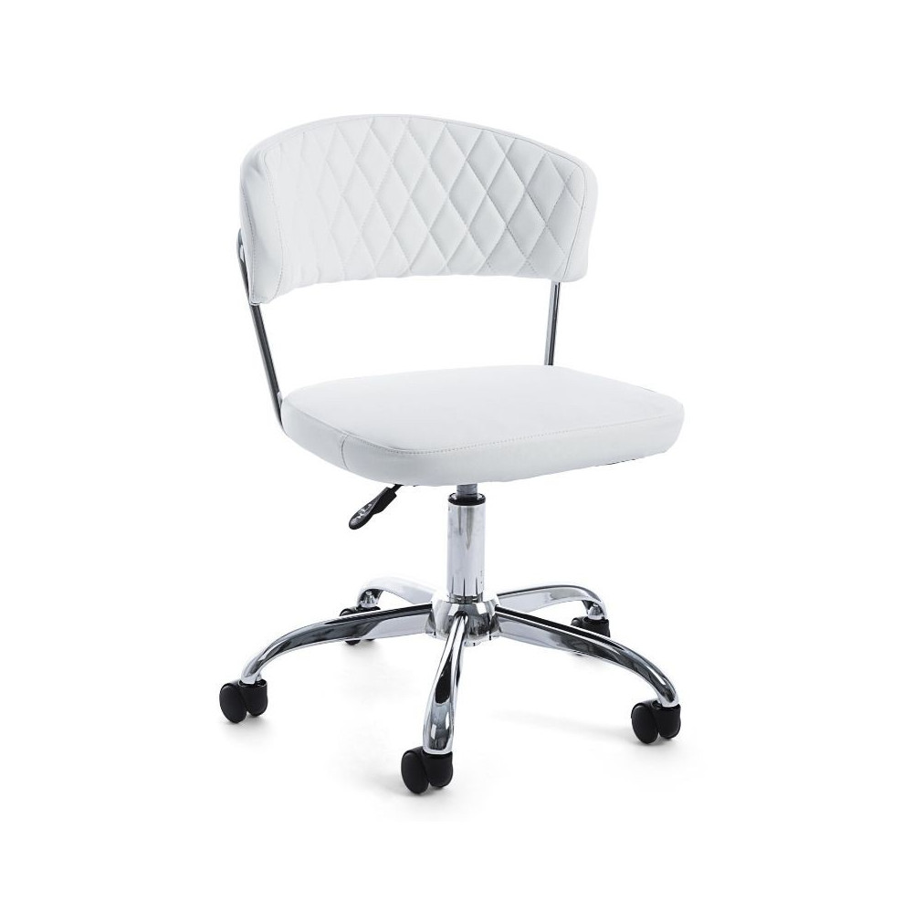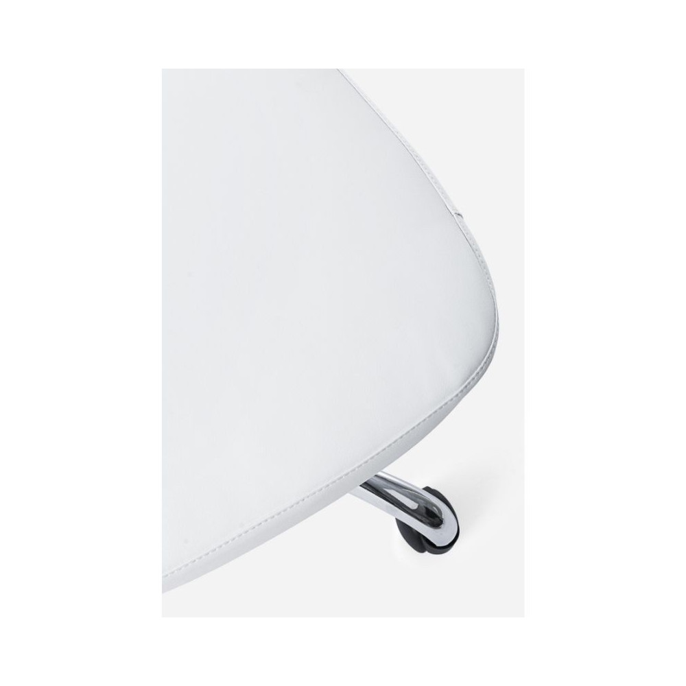 Poltrona nausica baianca con base in acciaio cromato Ø30 cm. Ruote in nylon. Imbottitura in schiuma poliuretanica, densità 28 KG/M3. Rivestimento in similpelle. Meccanismo di regolazione dell’altezza con pistone a gas.