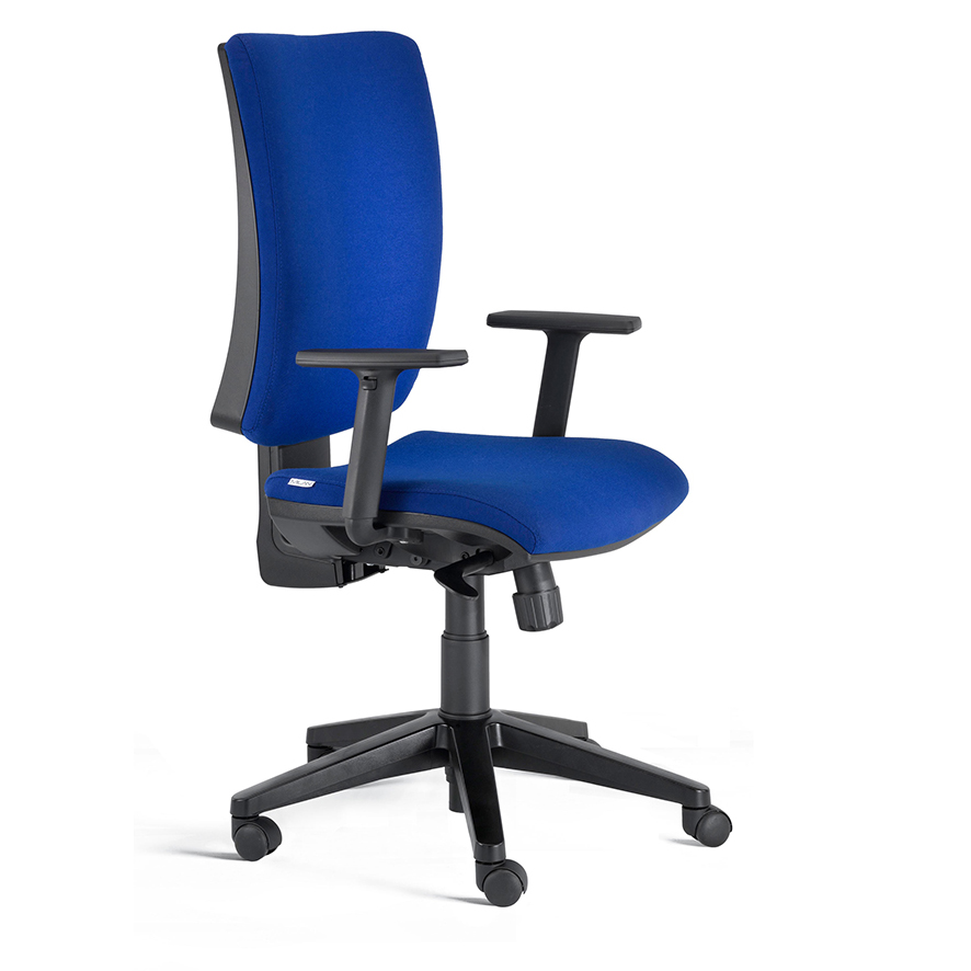 La poltrona operativa five è dotata di sedile imbottito in schiumato a freddo, schienale in resina espansa, plastiche a vista di colore nero, meccanismo sincronizzato, bloccabile in 5 posizioni, nero, base in nylon nero o alluminio lucido e set ruote autofrenanti in PP nere.