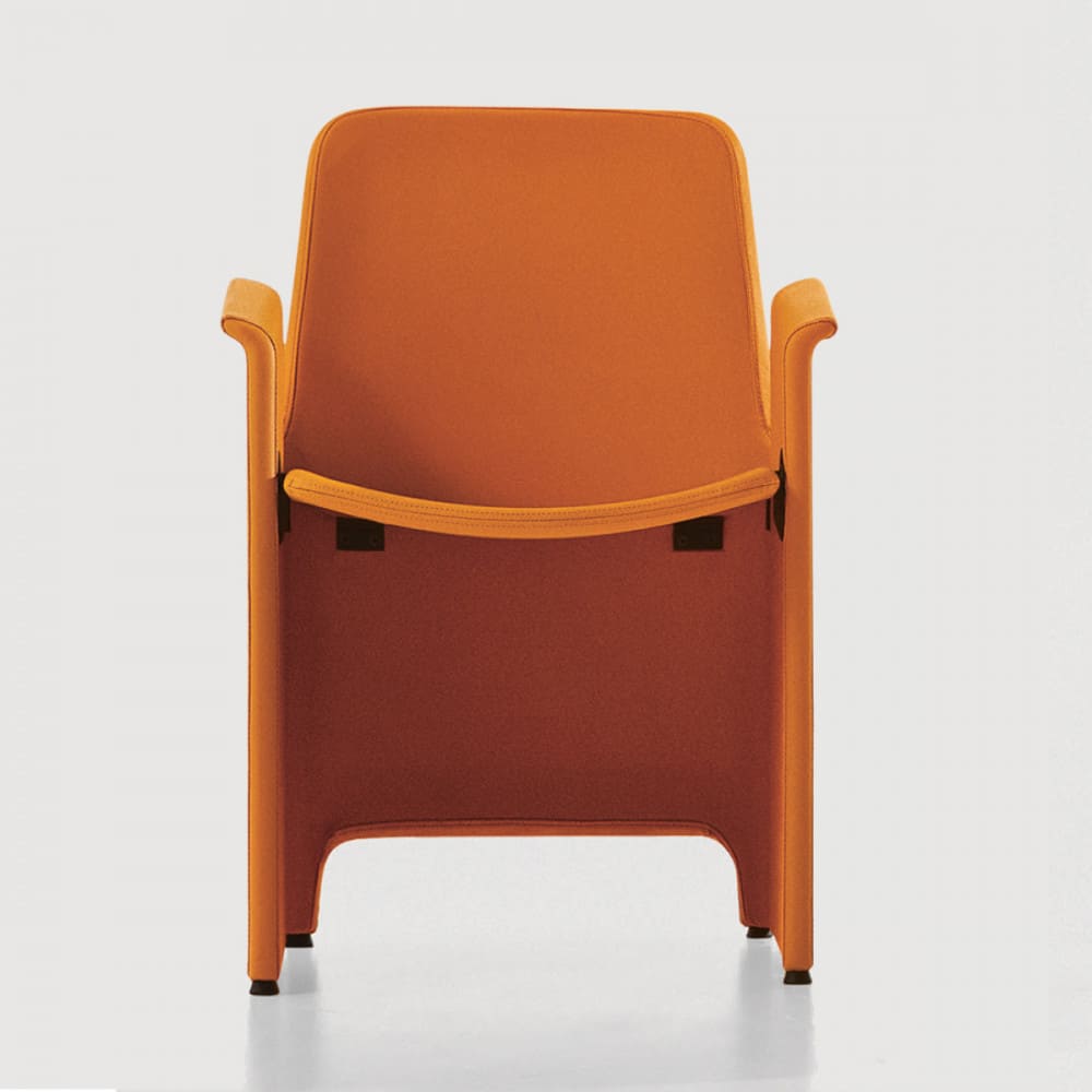 Il pozzetto pieghevole Mirò è la sedia front office con imbottitura in schiumato a freddo ignifugo. La particolarità sono i fianchi laterali fino a terra. La struttura è pieghevole e lo schienale è flessibile. Il rivestimento è a scelta.