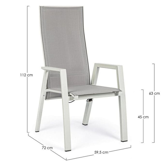 Set 4 sedie reclinabili steven lunar con struttura in alluminio verniciata a polvere (poliestere). Rivestimento in textilene 1×1. Schienale reclinabile in libera posizione